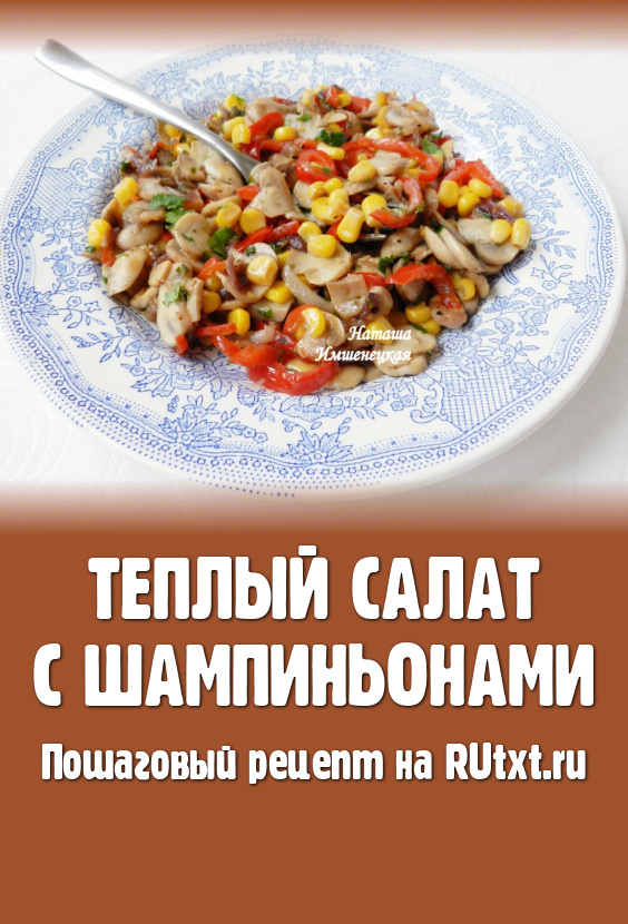 Яркий и вкусный теплый салат с шампиньонами готов.