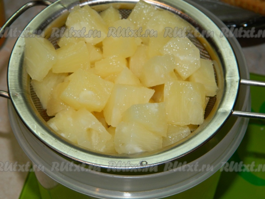 С консервированных ананасов сливаем сироп.