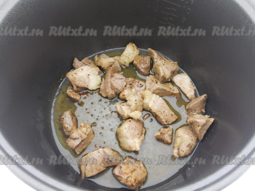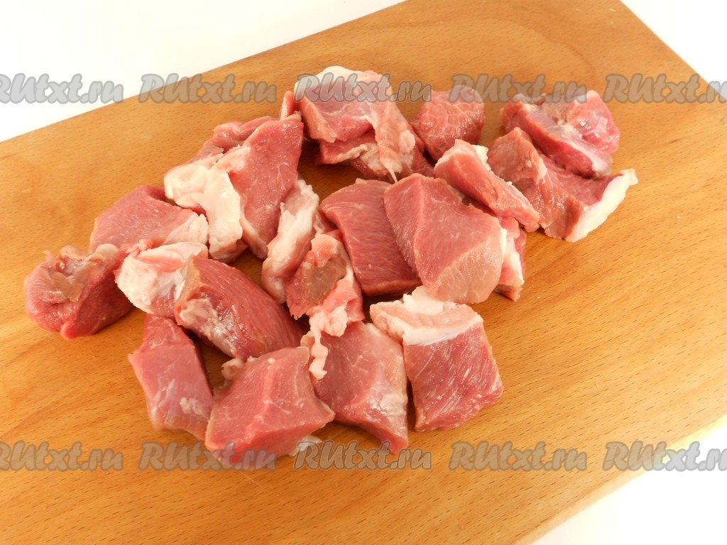 Мясо (у меня - свинина) порезать небольшими кусочками.