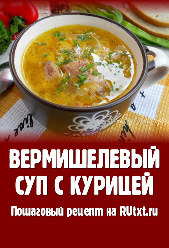 Накрыть кастрюлю крышкой и дать супу настояться 15-20 минут (за это время вермишель полностью дойдет и не развалится). Подавать этот вкуснейший вермишелевый суп с курицей горячим, посыпав зеленью и черным молотым перцем.