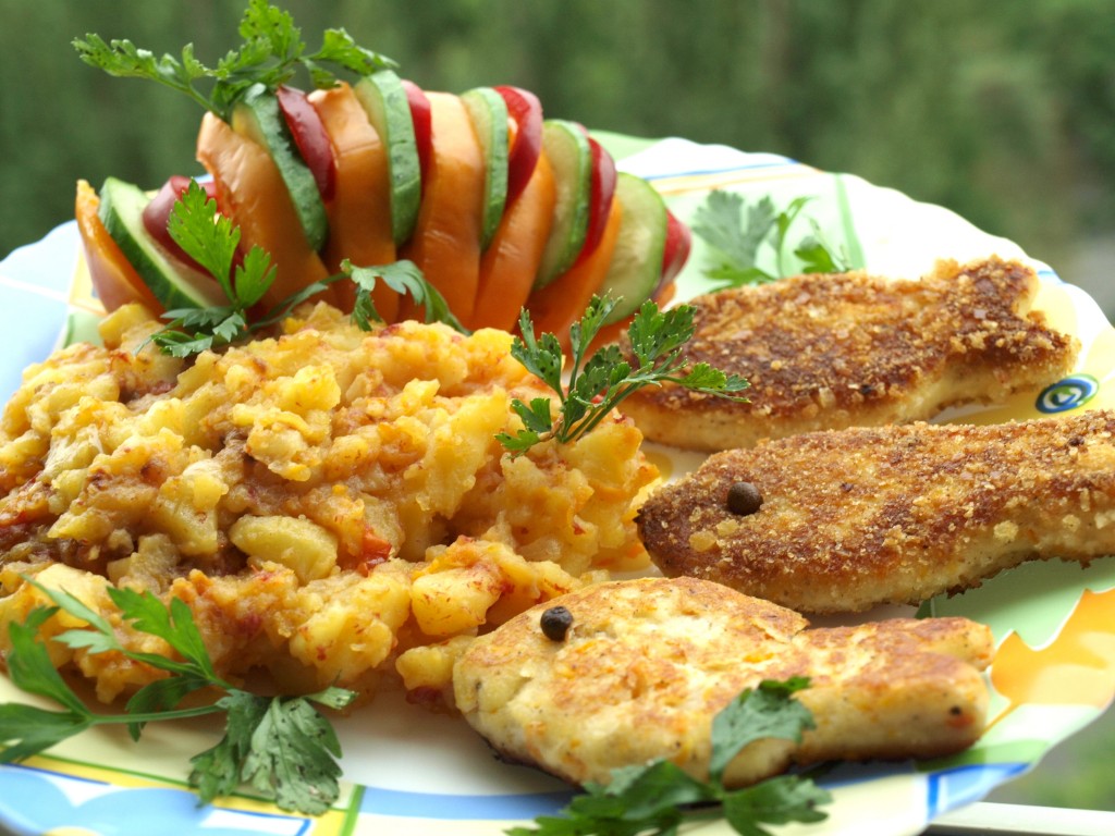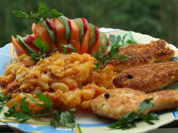 Картофельное пюре и овощи станут прекрасным гарниром к вкусным, нежным рыбным котлетам из судака.