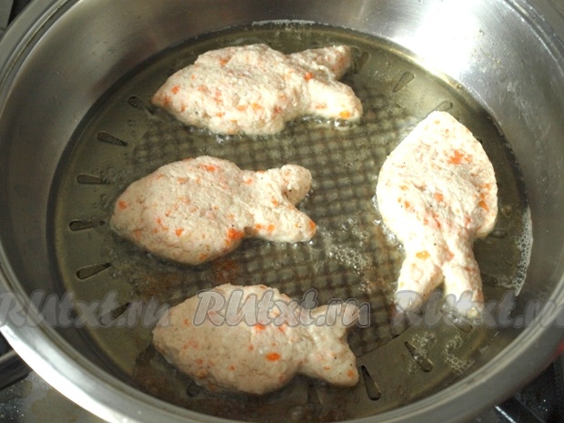 На сковороде разогреваем растительное масло и жарим котлеты с двух сторон до золотистой корочки.