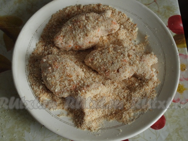 Начинаем лепить рыбные котлеты. Можно слепить и как обычно. Я решила в этот раз вылепить в форме рыбок. Котлеты можно жарить и в панировке, и без неё. Поэтому часть котлет я панировала в измельченных домашних сухарях. А часть рыбных котлеток оставила без панировки. Оба варианта получаются удачными. Только у котлет в панировке будет более хрустящая корочка, зато котлетки без панировки будут более диетическими.