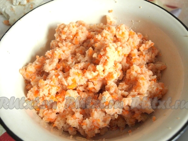 Филе судака (без шкуры) вместе с луком и морковью пропускаем через мясорубку (или измельчаем в комбайне). Полученный фарш солим, перчим и тщательно перемешиваем.