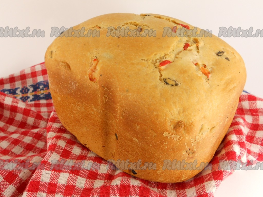 Хлеб с оливками - это очень вкусный, ароматный, красивый в разрезе закусочный хлебушек. Я добавила в тесто еще красный болгарский перец и чеснок - аромат необыкновенный! Подойдет к супам, в качестве бутербродов с сыром, да и просто с маслицем - так вкусно! Рекомендую! Я готовила тесто в хлебопечке.