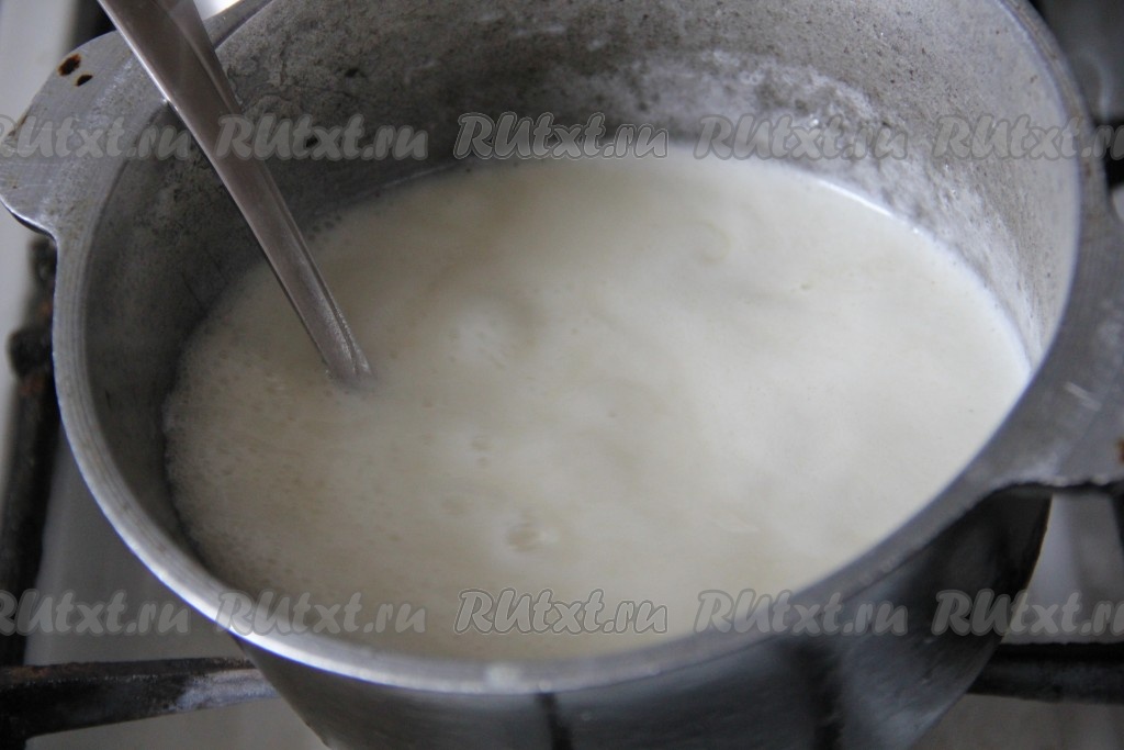 В кастрюле соединить молоко, масло и сахар, отправить на огонь и варить на умеренном огне, помешивая, 10-15 минут (постепенно масса начнёт густеть). На огне наша будущая домашняя сгущёнка не будет такой густоты, как вы себе представляете, она только слегка примет нужную консистенцию. Загустеет она уже в холодильнике, так что не переварите её.