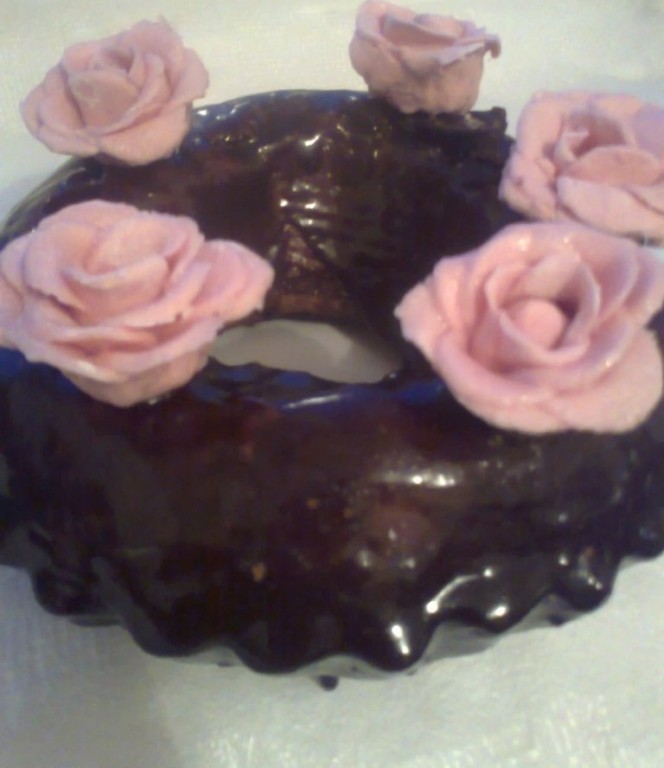 Так делаем необходимое количество роз. Из этого количества лукума получилось 5 роз. Украшаем кекс розами. Низ роз можно ровно срезать, для устойчивости.