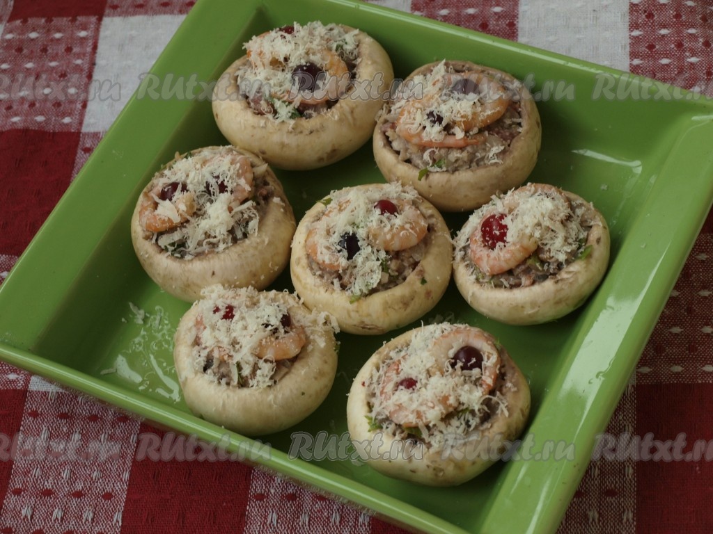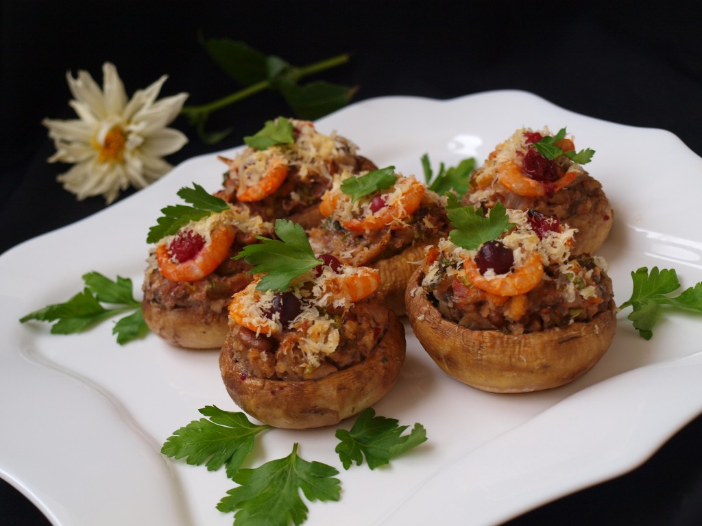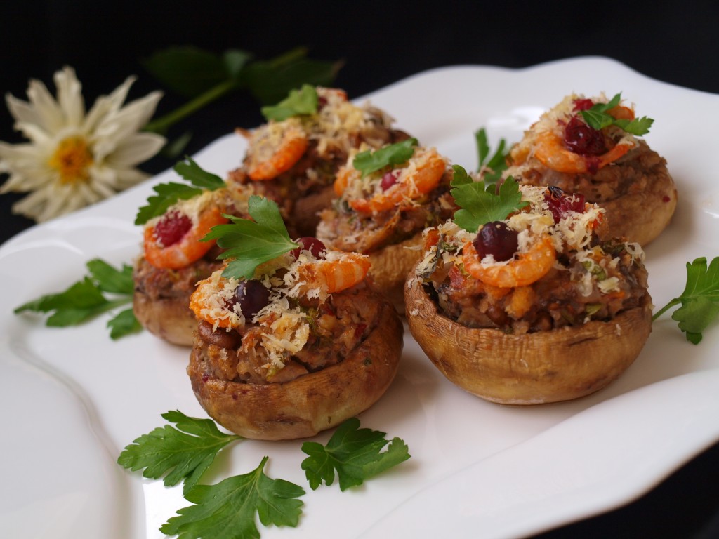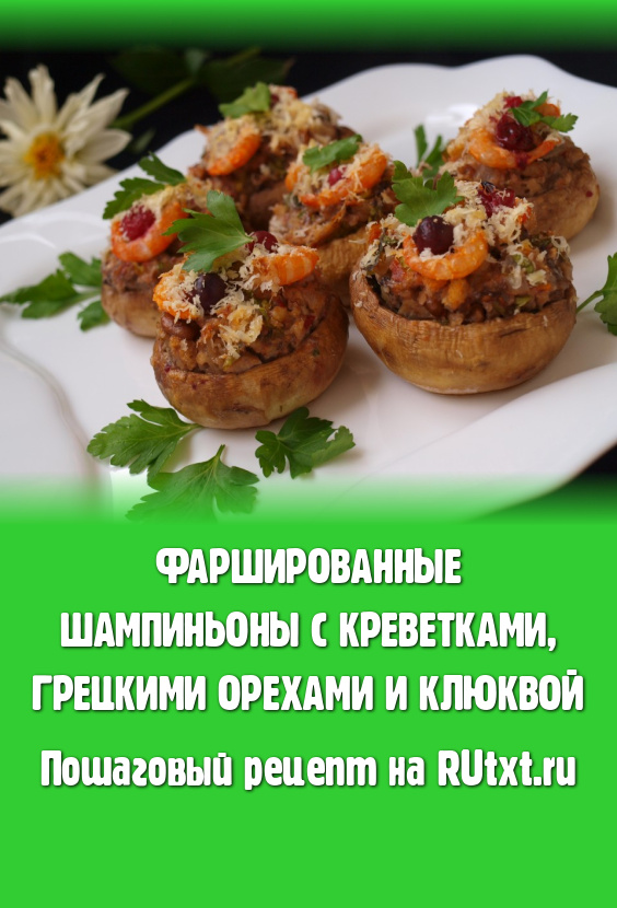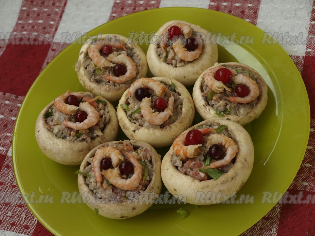 При всём многообразии рецептов приготовления фаршированных шампиньонов, всегда хочется создать что-то необычное, поражающее гармонией и новыми вкусовыми нотками. И мне это удалось. Фаршированные шампиньоны с креветками и клюквой, начиненные орехами и помидорами - необычное, но изумительно вкусное сочетание. Это блюдо достойно праздничного стола.