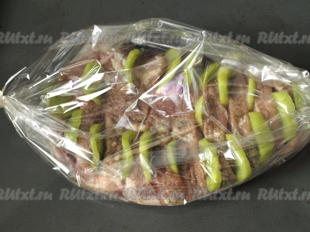 Свинину с киви помещаем в рукав для запекания и ставим в духовку, разогретую до температуры до 200 градусов.