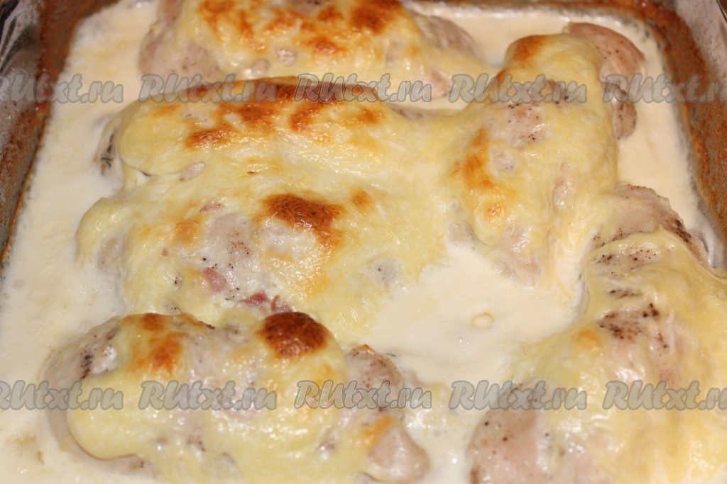 Через 30 минут достать куриные рулетики, снять фольгу, залить соусом и снова поставить в духовку.