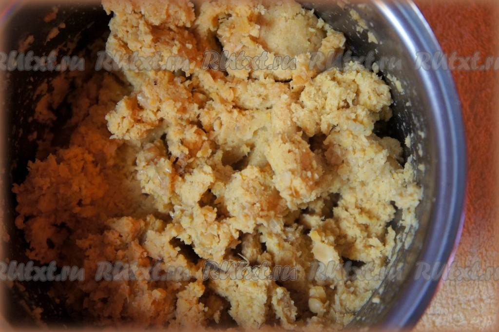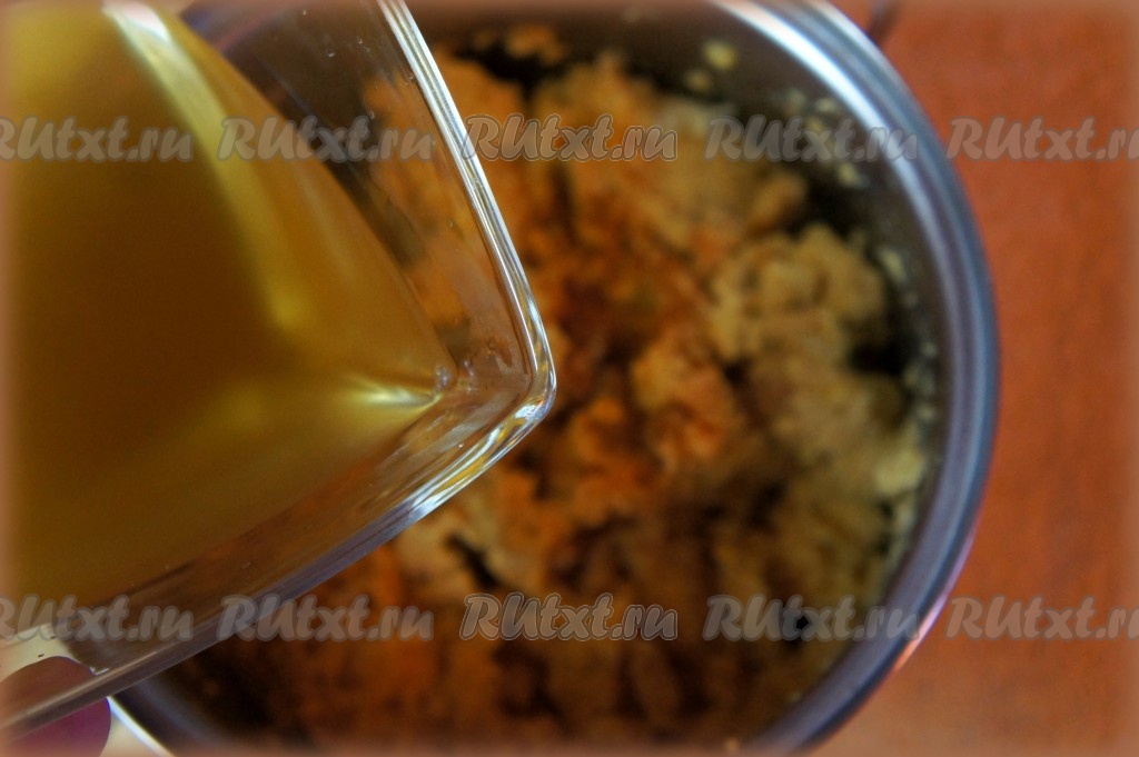 Пробить отварные соевые бобы и овощи блендером на пульсирующем режиме до однородного состояния.