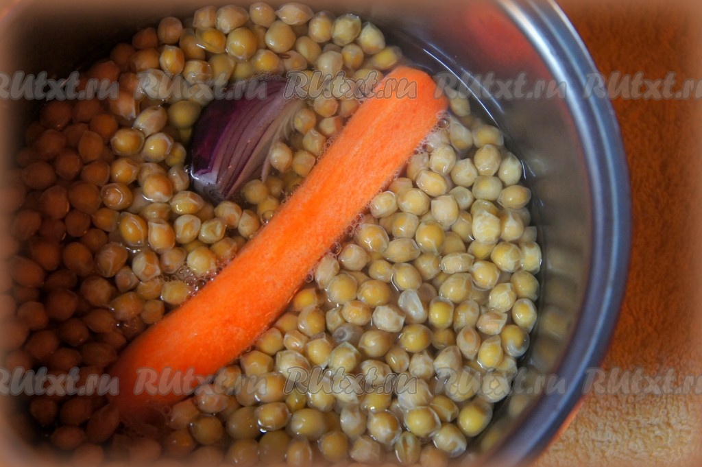 Добавить очищенную целую морковь, луковицу. Поставить варить на (!) медленный огонь. После закипания добавить соль, перемешать. Готовить около 1-1,5 часов до готовности. При необходимости небольшими порциями подливайте воду при варке бобов, они всегда должны быть покрыты небольшим количеством воды.