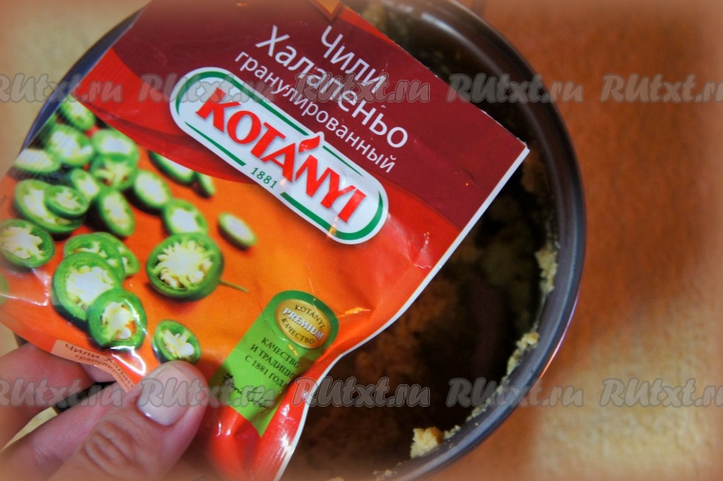 Добавить специи (я добавила перец "Халапеньо", красную сладкую паприку и чёрный молотый перец).
