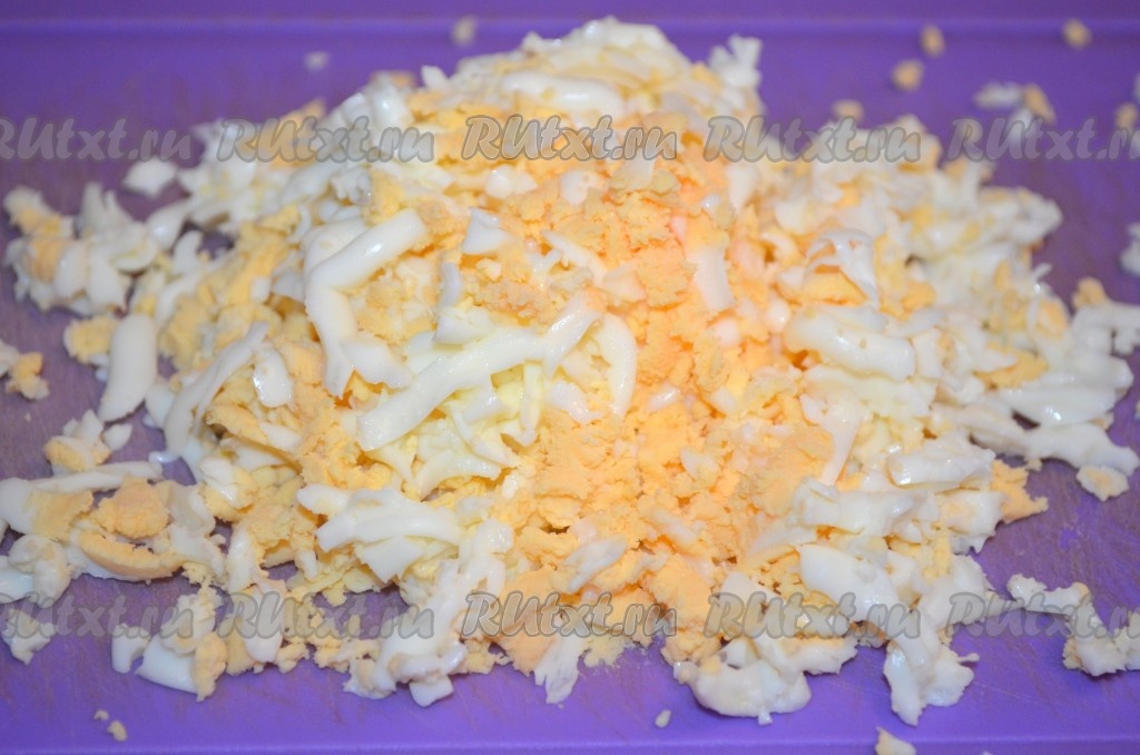 Яйца натереть на крупной терке.