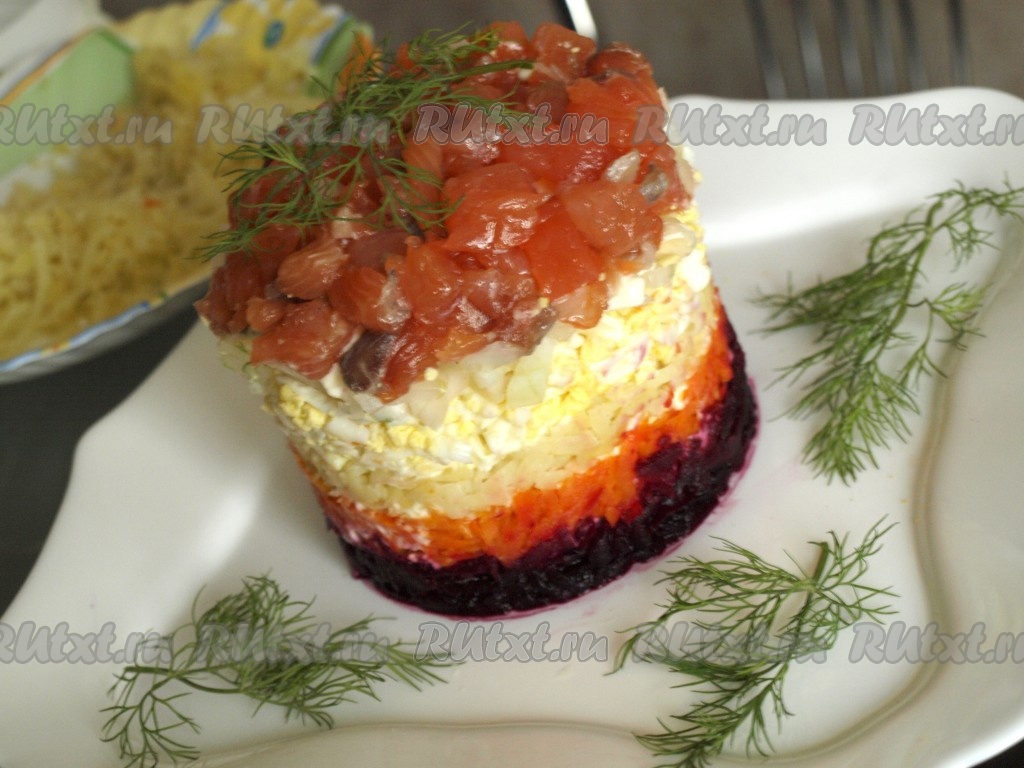 Салат "Королевская шуба" с сёмгой своими яркими красками украсит любой праздничный стол. Вкус этого блюда, возможно, чем-то напоминает любимый многими салат "селёдка под шубой", но получается более изысканным. Согласитесь, это ещё один повод обязательно его приготовить.