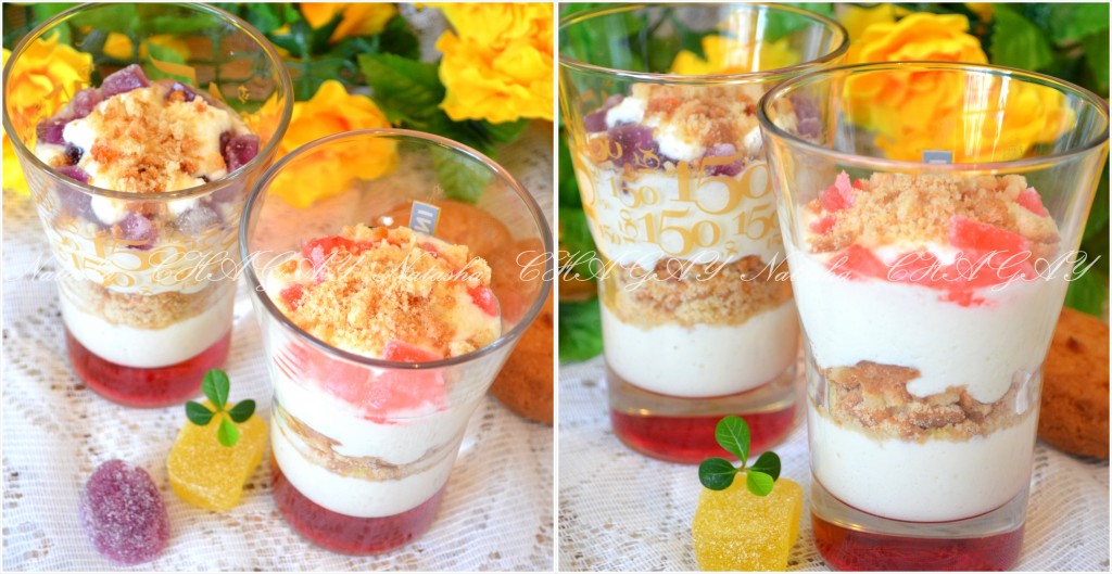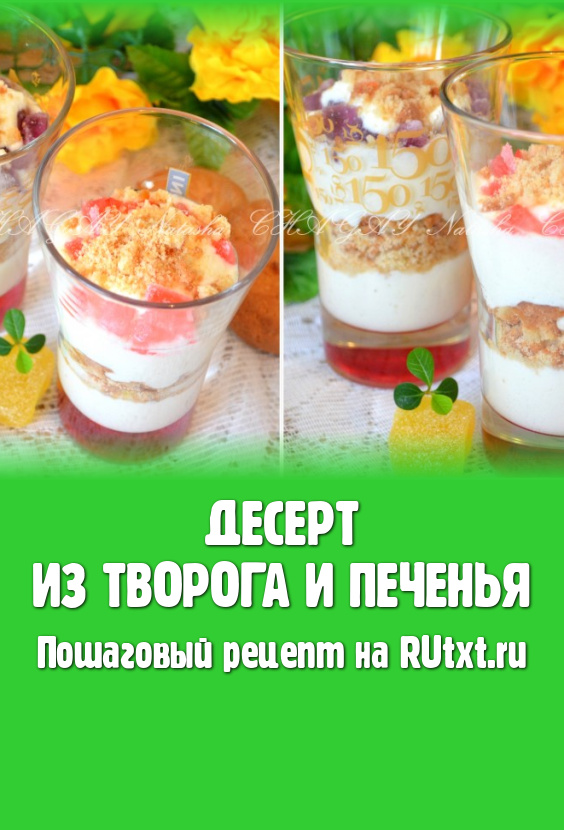 В стаканчике чередуем: творожная масса, печенье, снова творог, мармелад. Украшаем десерт из творога, печенья и мармелада по вкусу. Немного охлаждаем и можно подавать. Вкусный творожный десерт готов!