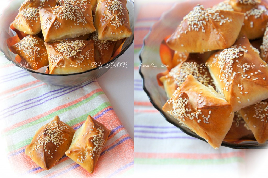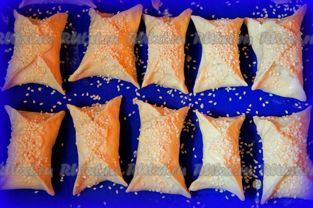 Сверху можно присыпать конвертики семенами кунжута.