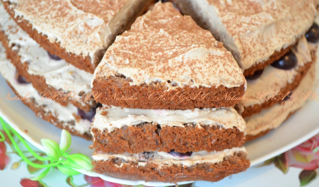 Перед подачей верх торта можно присыпать какао или натёртым шоколадом. Вот такой аппетитный тортик у меня получился из шоколадного бисквита, приготовленного на молоке в мультиварке. Угощайтесь!
