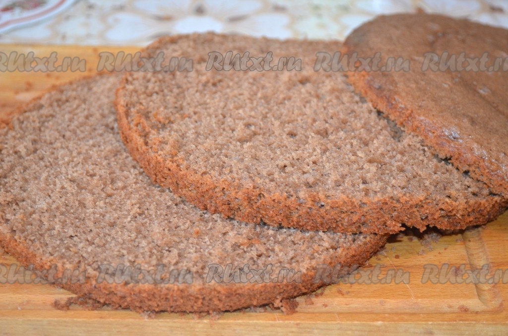 Готовый шоколадный бисквит вынуть из чаши мультиварки и дать ему полностью остыть. Я решила сделать из этого бисквита торт. Остудив бисквит, разрезать его на 3 коржа.