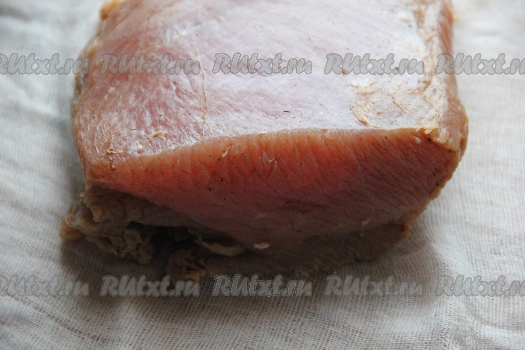 По истечении 10-12 часов (в зависимости от желаемой степени просолки грудки) достать мясо, промыть от специй и обсушить полотенцем.