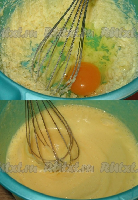 Затем добавить по одному яйца, каждый раз тщательно взбивая.
