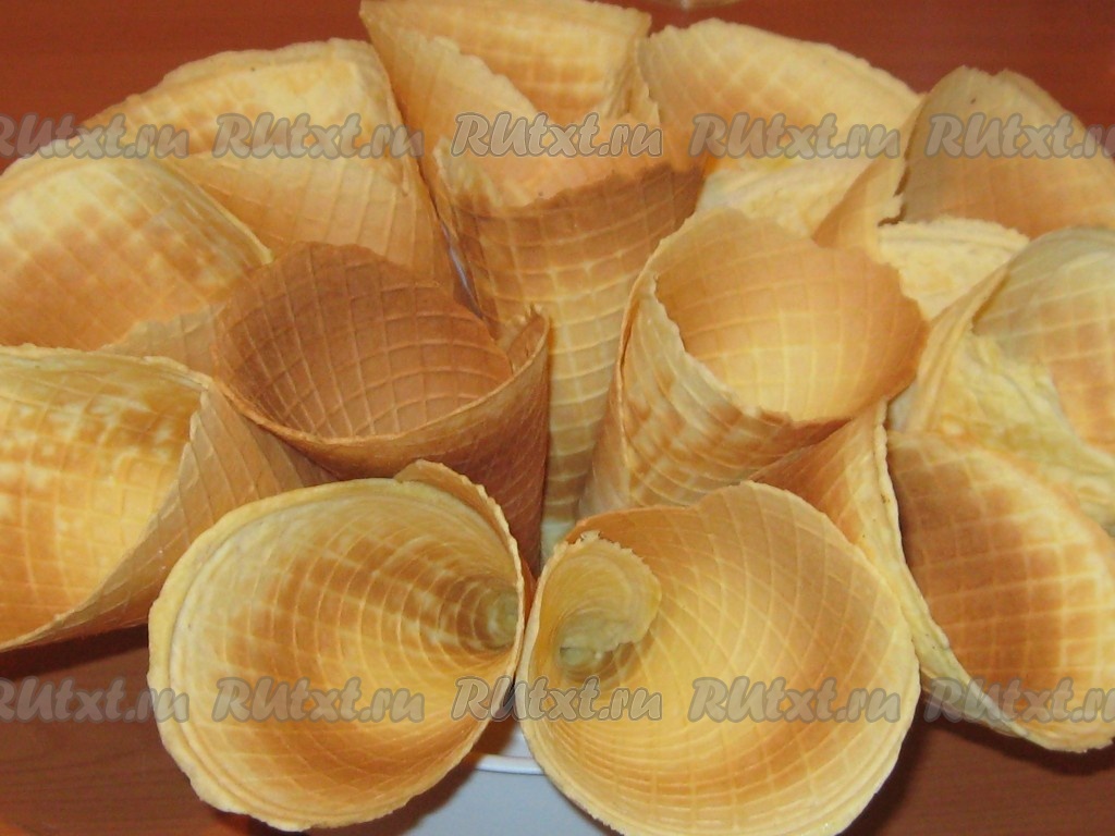 Затем вафельные рожки аккуратно установить в широкую неглубокую емкость в виде букета.