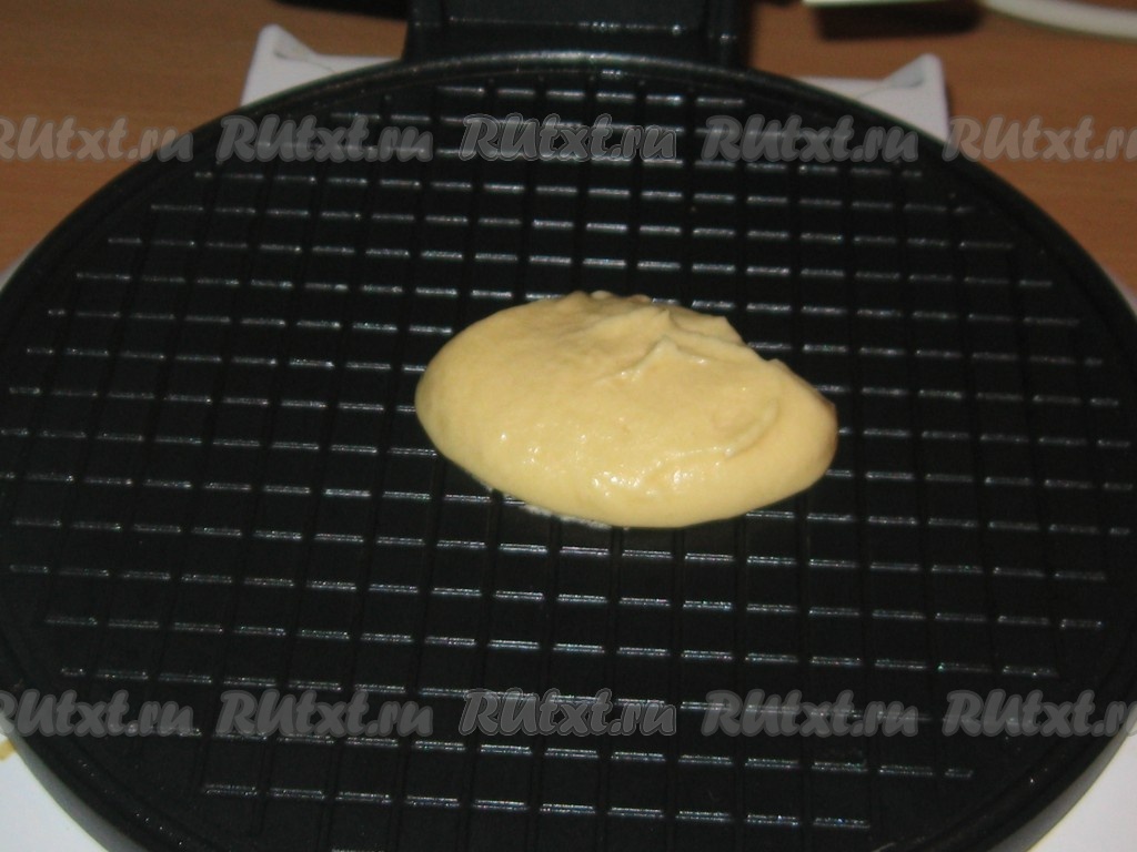 Вафли выпекать в вафельнице, выкладывая по 1 столовой ложке теста.