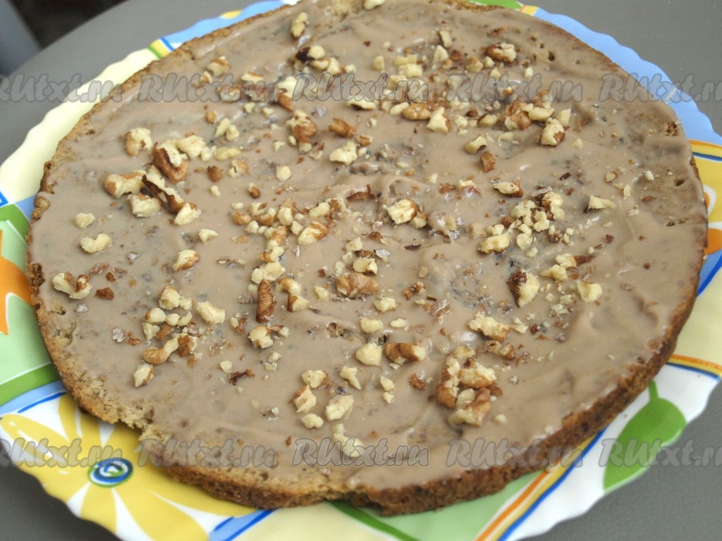 Для приготовления глазури смешиваем какао с сахаром, добавляем молоко, ставим на средний огонь, постоянно помешивая. Когда масса станет однородной, добавляем сливочное масло, доводим глазурь, помешивая, до кипения (но не кипятим). Горячей глазурью поливаем ореховый торт и посыпаем орехами. Ставим на несколько часов в холодильник для пропитки. Ореховый торт, приготовленный с грецкими орехами и сгущёнкой, получается изумительно вкусным. Такой десерт несомненно понравится и вам, и вашим близким!