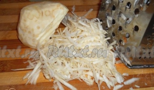 Теперь на крупной терке натираем яблоки, добавляем в тесто и перемешиваем.