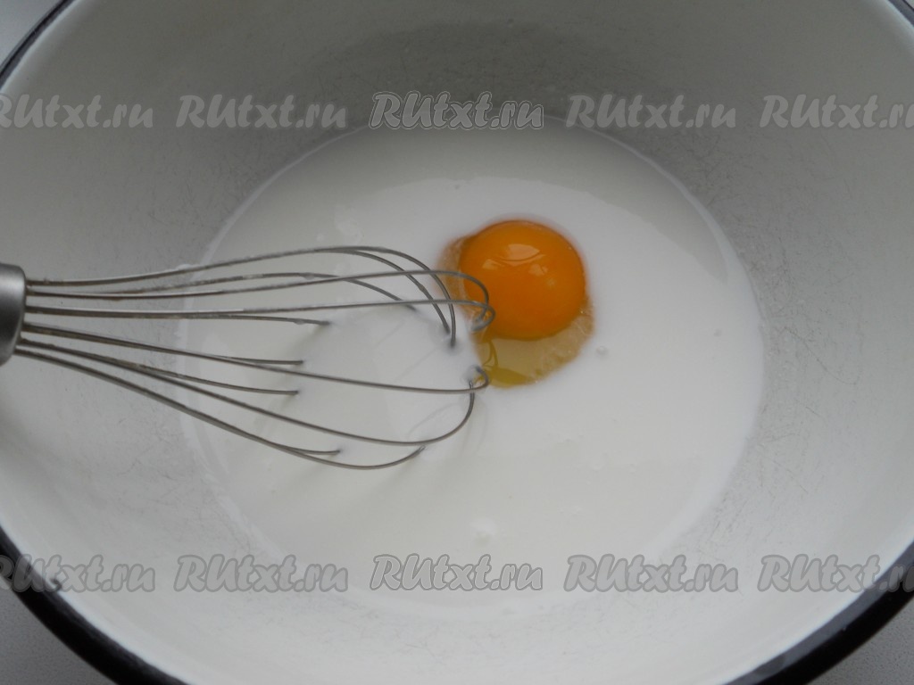 Воду смешать со сметаной и добавить яйцо.
