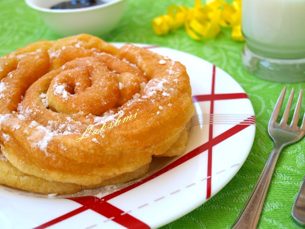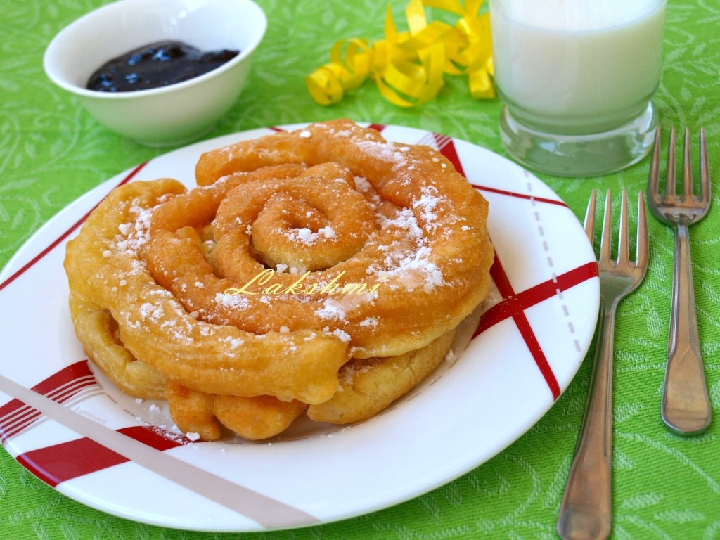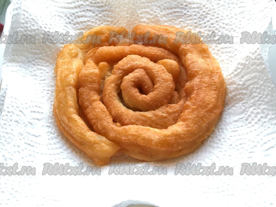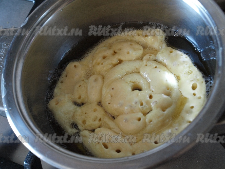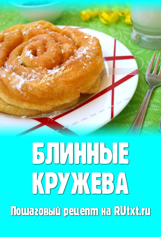 Тесто помещаем в кулёк (или в кондитерский мешок). В кастрюльке (или сотейнике) хорошо разогреваем растительное масло и выдавливаем тесто по спирали прямо в масло. Блинные кружева готовятся в большом количестве растительного масла. В процессе приготовления спирали увеличиваются в размерах. Блинчик обжариваем с двух сторон.