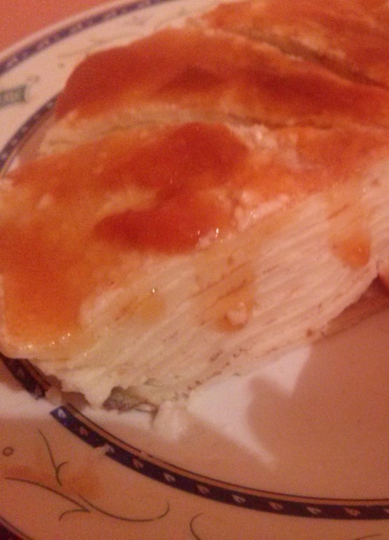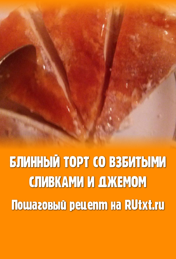 Этот блинный торт со взбитыми сливками и джемом подходит для любителей блинов и тех, кто не любит готовить коржи для торта.