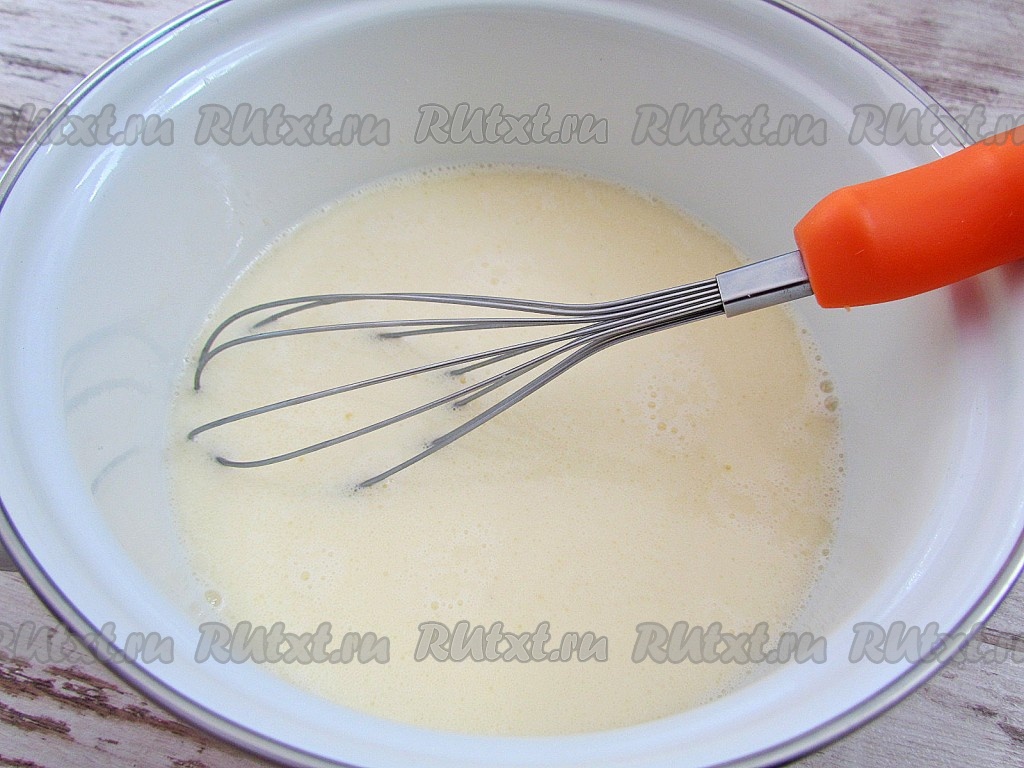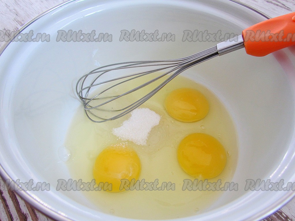 Яйца взбейте с сахаром и солью.