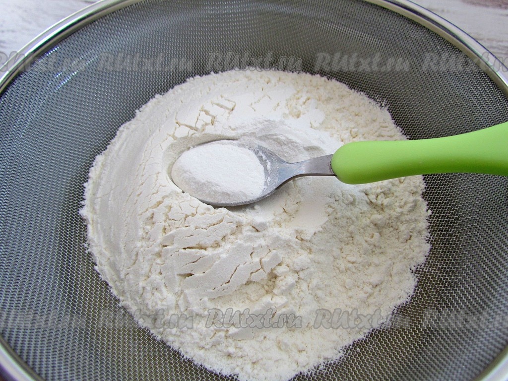 Муку просейте вместе с разрыхлителем.