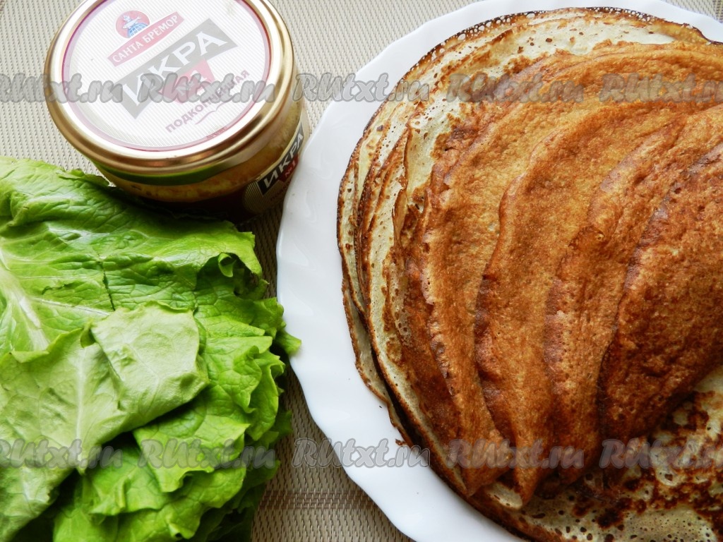 На Масленичной неделе мы стремимся порадовать своих родных разнообразными вкусными блинами. В одном из кулинарных журналов я увидела рецепт блинов с оригинальной начинкой. Я приготовила блинчики по своему любимому рецепту и начинку из икры мойвы. У меня получились замечательные, очень вкусные, пикантные закусочные блины.