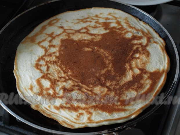 Переворачиваем и жарим блинчик с другой стороны. Блин получится достаточно толстеньким.