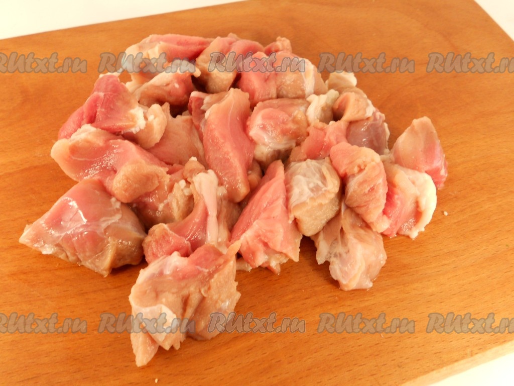 Свинину помыть, обсушить и нарезать небольшими кусочками.