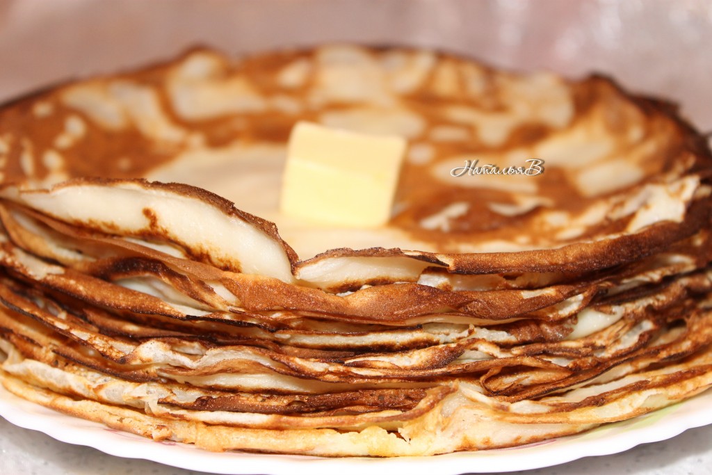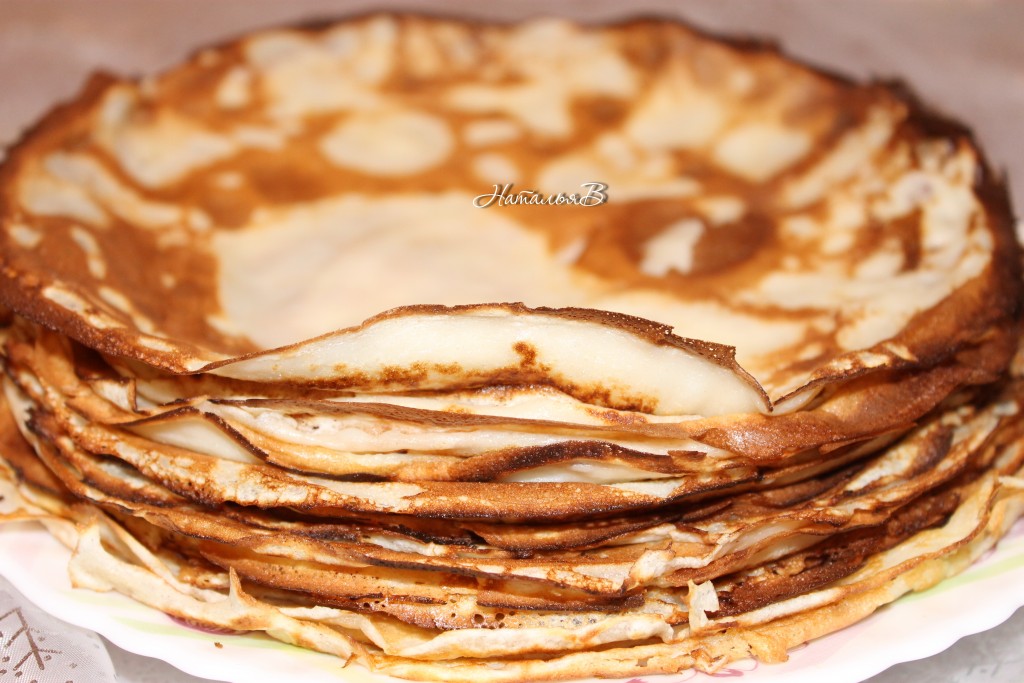 Из всех видов и многообразия блинов больше всего люблю тонкие блинчики. У каждого есть свой любимый и неповторимый рецепт - кто-то печет их на кефире, кто-то на кислом молоке, на кипятке, сладкие и несладкие, дырчатые, крахмальные и т.д., перечислять можно бесконечно... У меня всегда их печет мама и рецепт я позаимствовала у нее, немного изменив. Чтобы блинчики всегда получались, были мягкими, румяными и очень вкусными, следует следовать нескольким правилам (я их придерживаюсь всегда): свежие яйца (чем больше яиц, тем нежнее и румянее блинчики - блинное тесто очень их любит!), мука пшеничная высшего сорта (желательно ее просеять) и, конечно, хорошая сковорода (а лучше чугунная) - вот и все - прекрасный и вкусный результат гарантирован. Такие блинчики можно есть с разнообразными начинками или просто так!