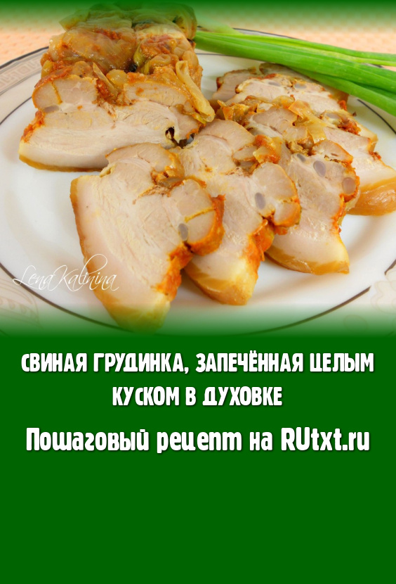 Свиная грудинка, запечённая целым куском в духовке, является отличной альтернативой покупной колбасе. Такую грудинку, нарезанную на кусочки, можно подать и на праздничный стол, и использовать для приготовления бутербродов. Уверена, нежная, вкусная грудинка обязательно понравится вашим родным и гостям!