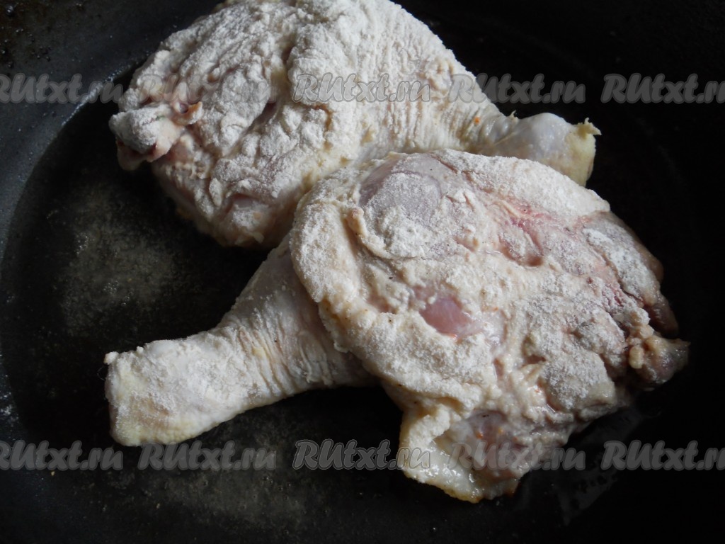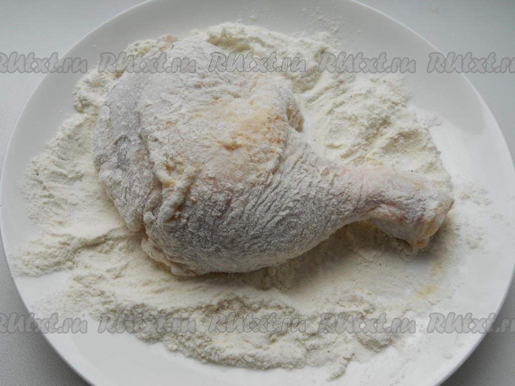 Окорочка немного обтереть бумажными полотенцами и полностью обвалять в мучной смеси.