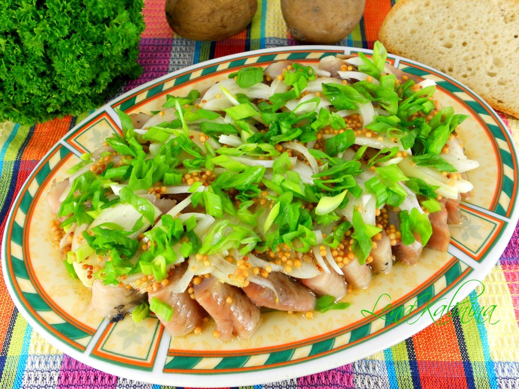 Необыкновенно вкусной получается солёная селёдка, если перед подачей дать ей в течение нескольких часов пропитаться заправкой, приготовленной с горчицей и уксусом. Селёдочка становится ароматной, аппетитной, сочной. Такую рыбку можно подать и к повседневному обеду или ужину с отварной картошкой, и в качестве закуски к праздничному столу. Очень советую приготовить!