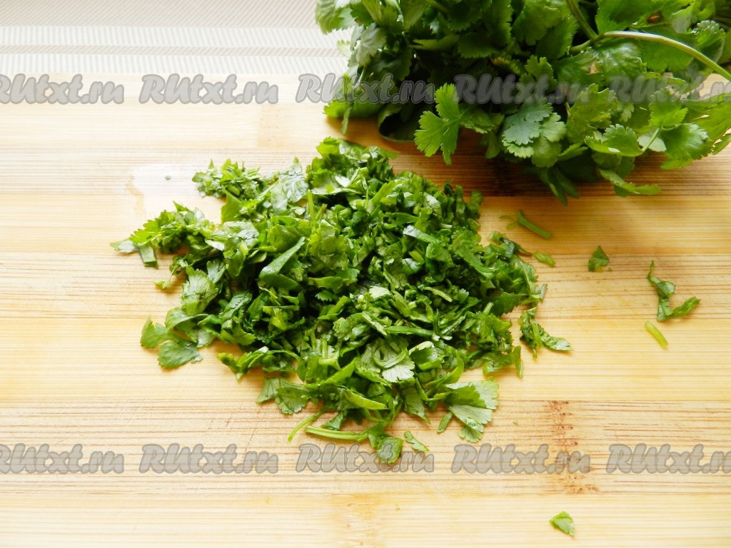 Мелко нарезать свежую кинзу.