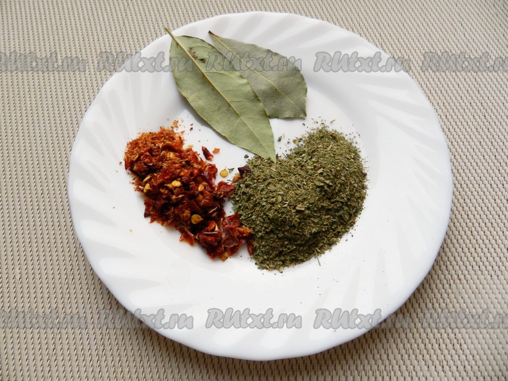 Приготовить специи - хмели-сунели, острый перец и лавровый лист.