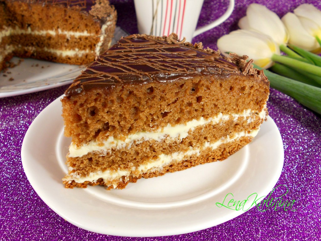Взбить миксером до однородности. Готовым масляным кремом смазать нижний и средний коржи.