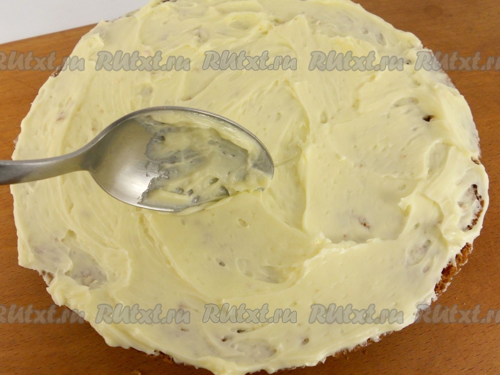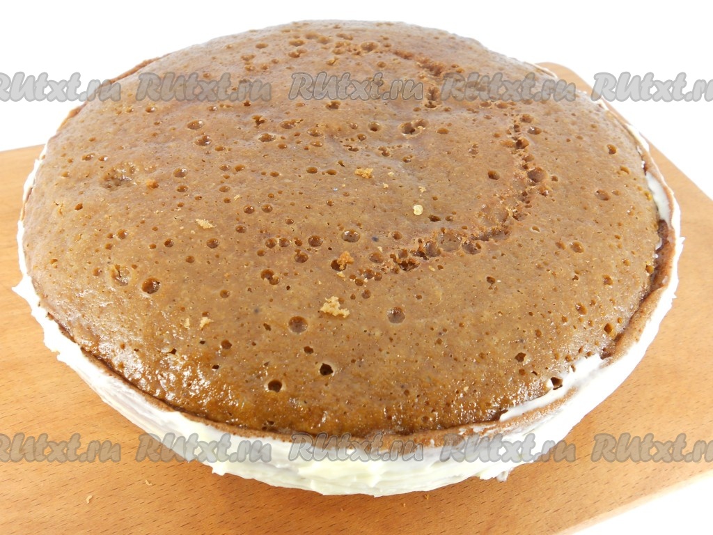 Также смазать и бока торта. Верхний корж не смазывать кремом.