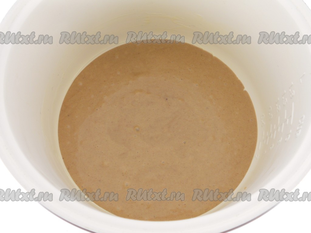 Чашу мультиварки смазать немного маслом и вылить подготовленное тесто (тесто получается, как густая сметана).