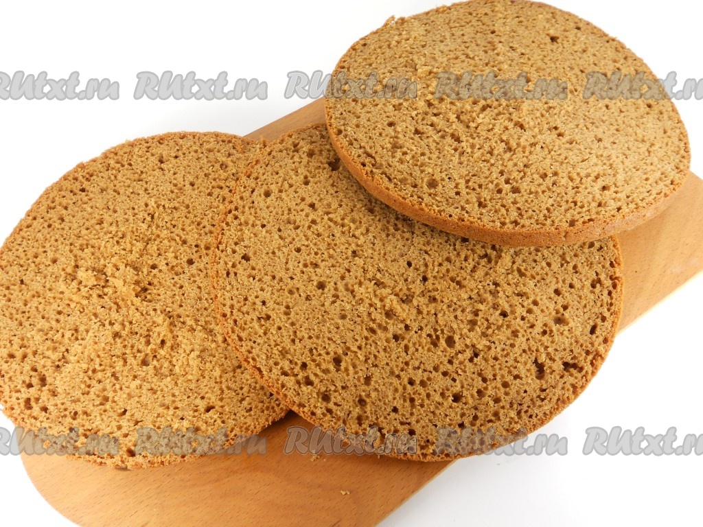 Разрезать корж на 3 части.