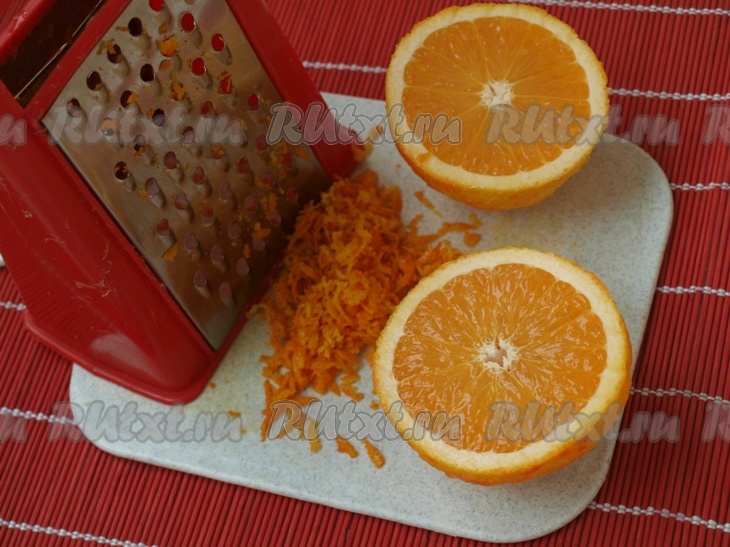 С помощью тёрки снять цедру с апельсина. Из апельсина выдавить сок.