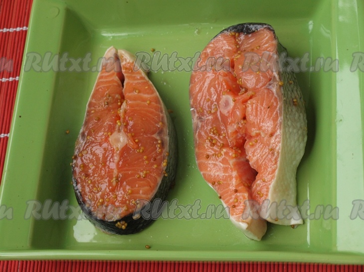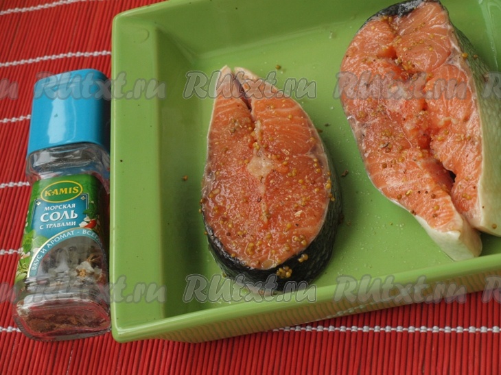 Оставить стейки сёмги минут на 15, чтобы рыба промариновалась.