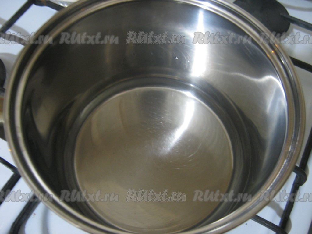Берём кастрюлю объемом не меньше 2 литров, заливаем воду и доводим до кипения.